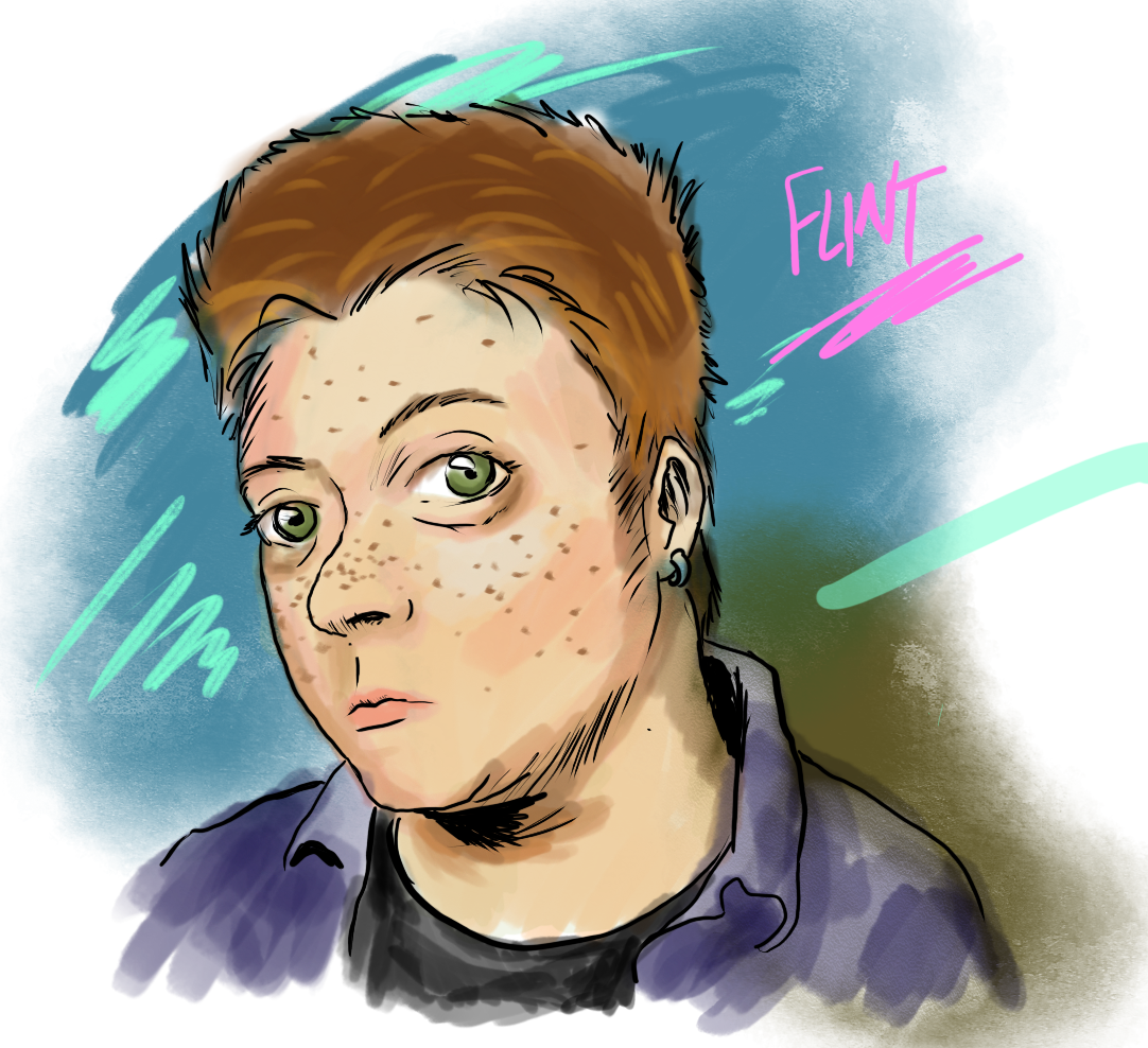Flint squints and looks from me to the sky, then down at his scarf and wrist warmers, and purses his lips. I can't help but smile in return.Flint grins back, and asks, "You wanna go get some lunch before you head back to um..." he trails off, pantomiming what I can only assume is his approximation of some kind of explosion.