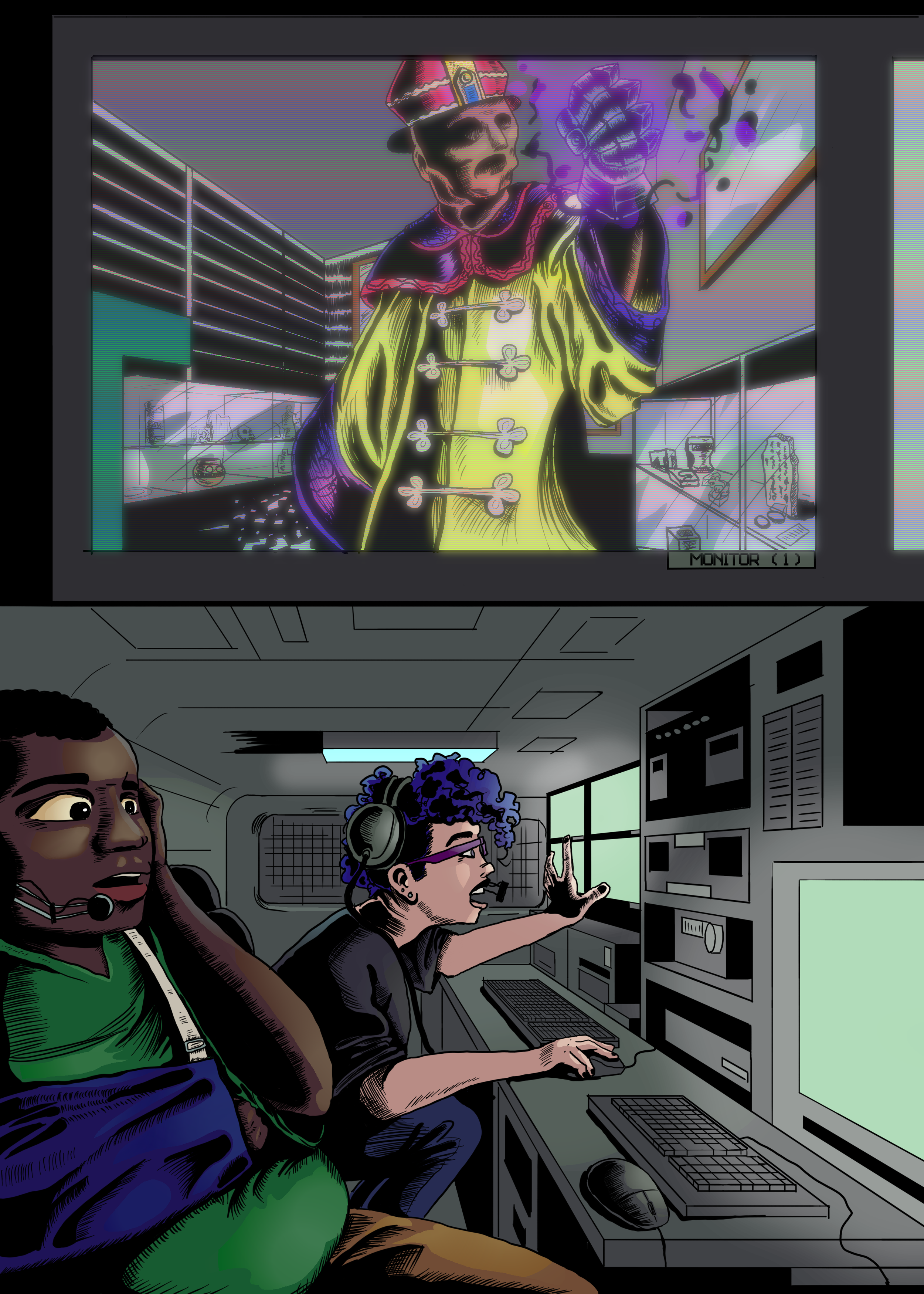 Flint stops on the stair below me, looking up at me. He's saying something, but I can't make it out. Something about me being okay. Am I okay? Fizz, hiss. My brain is filling with static, my vision tunneling. I'm only vaguely aware of my friend. He's released my arm and started to follow my gaze. I stand still on the stairs, my jaw repeatedly clenching in anger and slacking in disbelief.